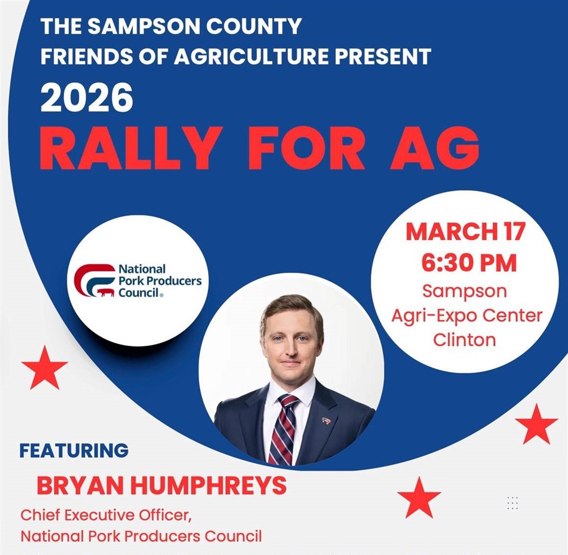 Graphic provided by Sampson County Friends of AgricultureThe Sampson County Friends of Agriculture would like to invite the greater Fayetteville community to their annual Agriculture Rally on March 17, 2026, at 6:30 p.m. Originally organized by