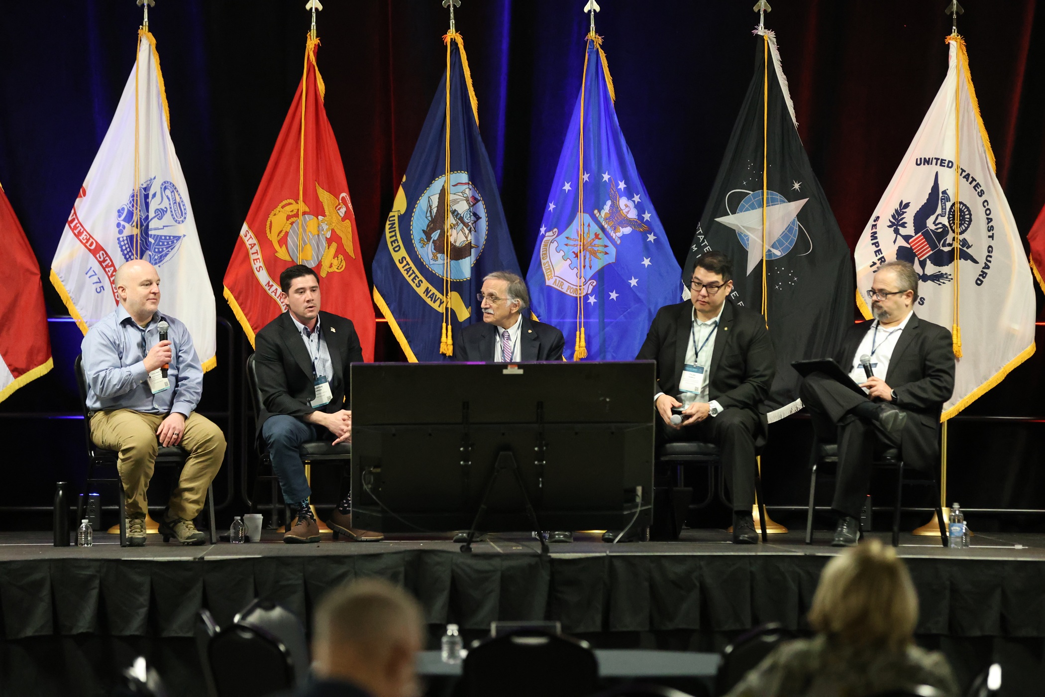 From Concept to Capability panelists (L to R) Dr. Paul Baker principal deputy (A) of the Army Science Division Army Research Office, Klinton Snead, extramural staff director for the Army Research Office, panel moderator Phil Williams, VP of corporate ...