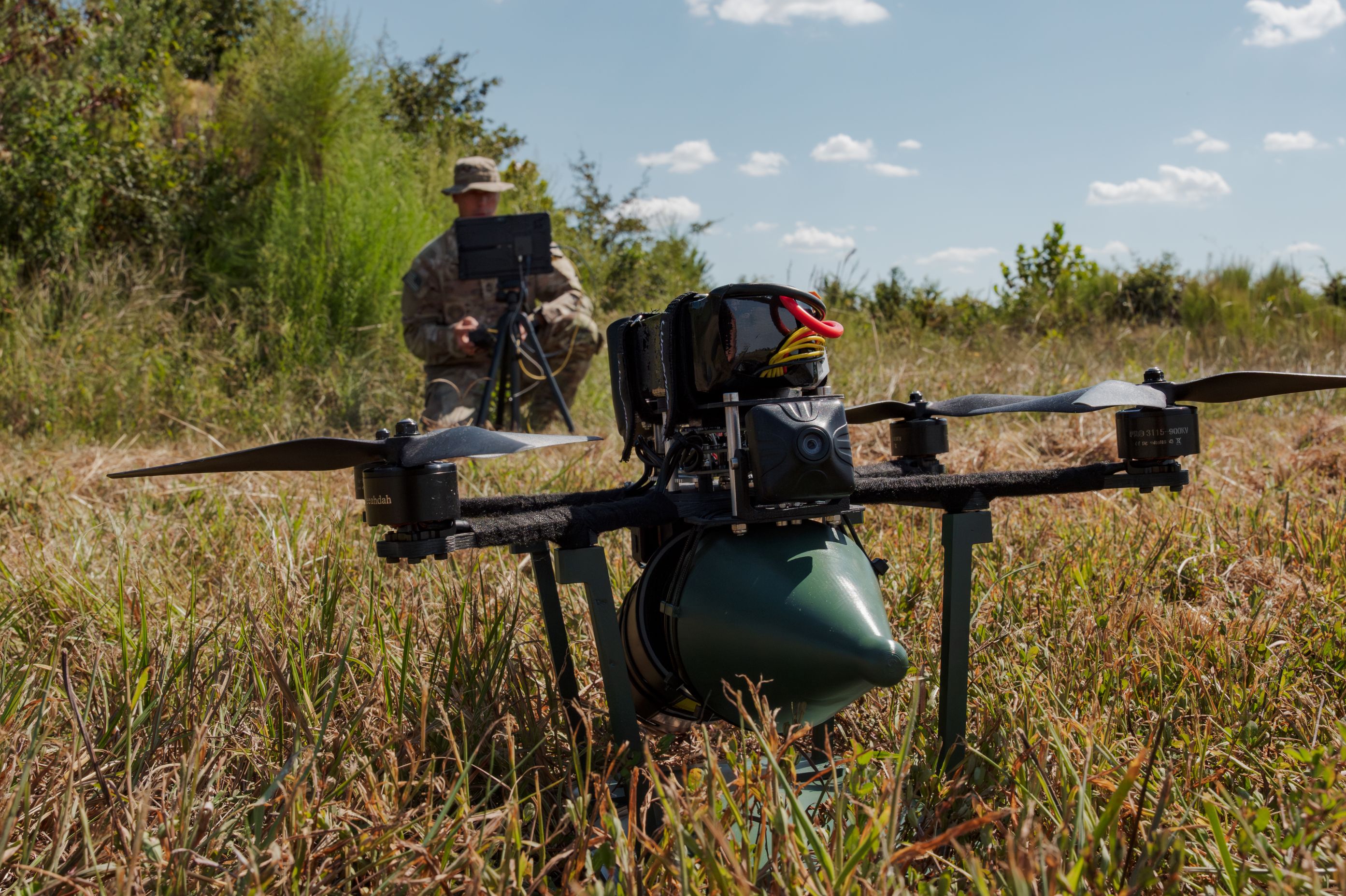 Spc. Alexander Soto, a paratrooper assigned to the 1st Battalion, 504th Parachute Infantry Regiment, presents the modular drone case at the Airborne Innovation Lab, Fort Bragg, North Carolina, Feb. 9, 2026. Soto noted the recurring problem of drones ...
